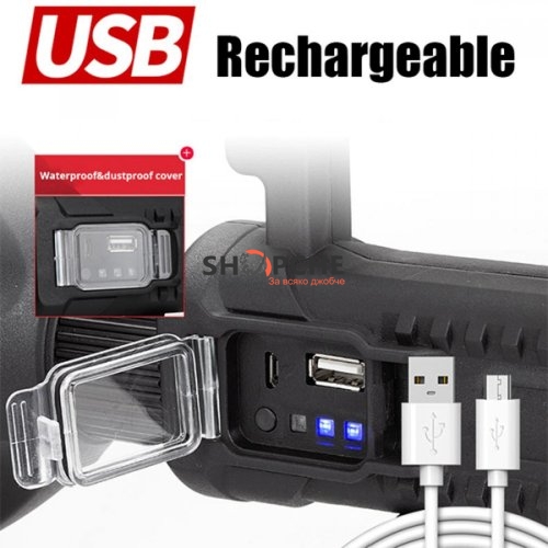 2. Мобилно захранване: удобен начин за зареждане на вградена литиево-йонна батерия с USB кабел, можете бързо и лесно да зареждате фенера чрез индикатора за захранване