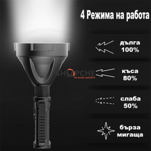 1.Супер ярк: LED чипа е от серия XHP осигуряват супер ярка светлина, разстоянието на лъча надвишава 1500 метра.