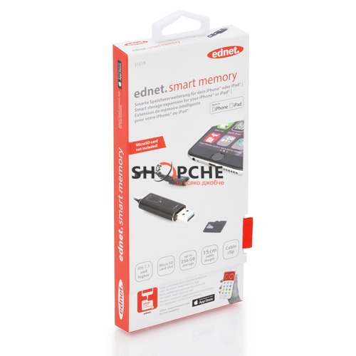 С ednet Smart Memory можете лесно да разширите съхранението на вашия iPhone или iPad, като добавите до 256 GB с допълнителна памет на MicroSD карта.