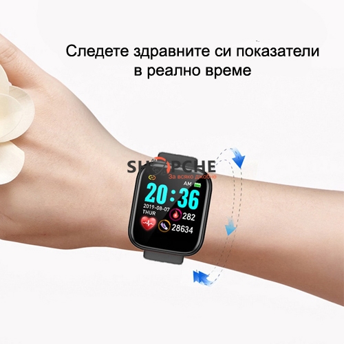 Функции- Спорт, Съобщение, Будилник, Кислород в кръвта, Дата, Измерване на сърдечната честота, Неподвижно напомняне, Управление на съня, Време