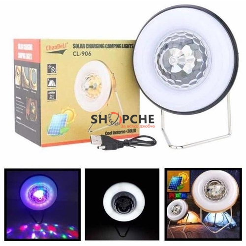 Многоцветната соларна лампа CL-906 е подходяща за къмпинг, излет, домашни услвия, или други.