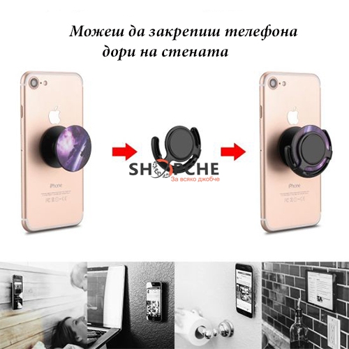Popsockets се прикрепя за телефона и служи като поставка или дръжка за максимален комфорт.