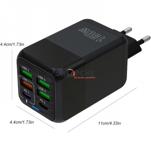 Висока изходна мощност: 150 W обща мощност осигурява бързо зареждане за няколко устройства едновременно.