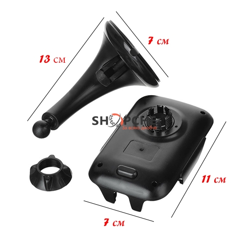 Тя се закрепя с помощта на вакуум за стъклото на колата!