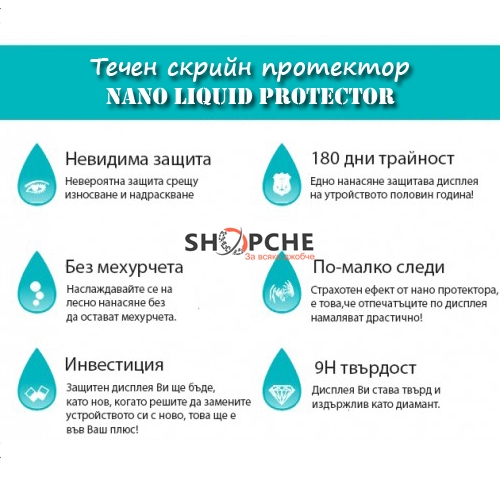 Само едно нанасяне от Nano Liquid протектор с уникалната анти-статична и против надраскване формула, ще пази дисплея Ви в продължение на 6 месеца от надраскване, разляти течности, прах и други замърсявания!