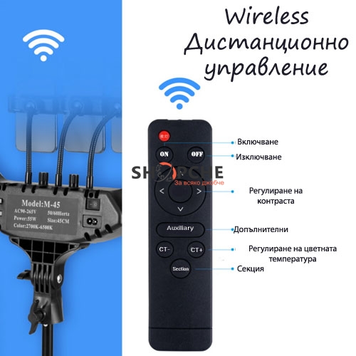 Тип светлина – Бяла, топла бяла и топла жълта светлина.