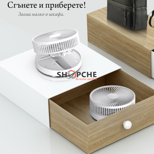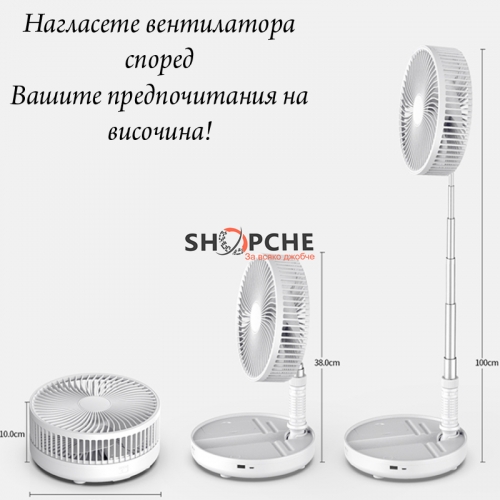 Уникален прибиращ се и сгъваем дизайн - Може да се сгъва и разширява като настолен вентилатор и може да се разшири от 10 см до 100 см като вертикален вентилатор.