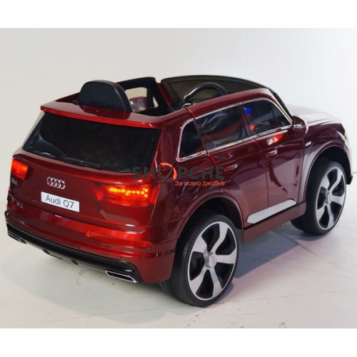 Акумулаторен джип Audi Q7 ще донесе много радост на всички деца. Моделът е лицензиран с много екстри, като едни от тях са меките гуми от EVA пяна и кожената седалка за максимален комфорт при шофиране!