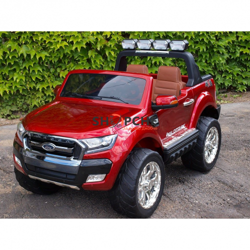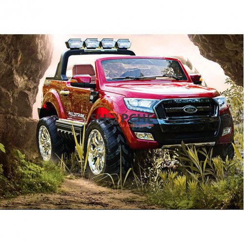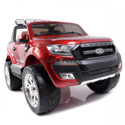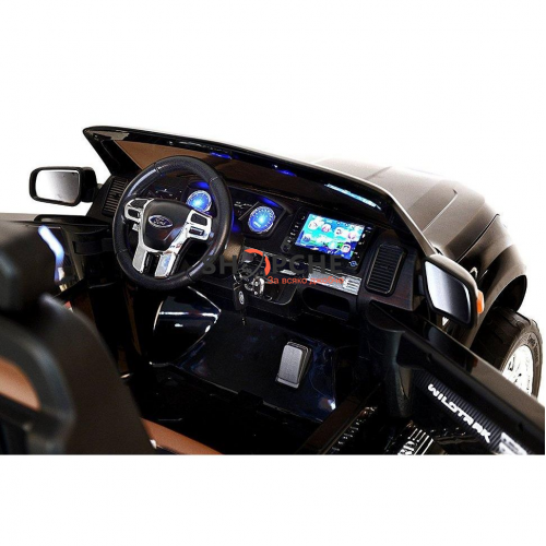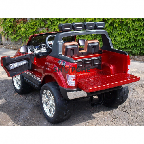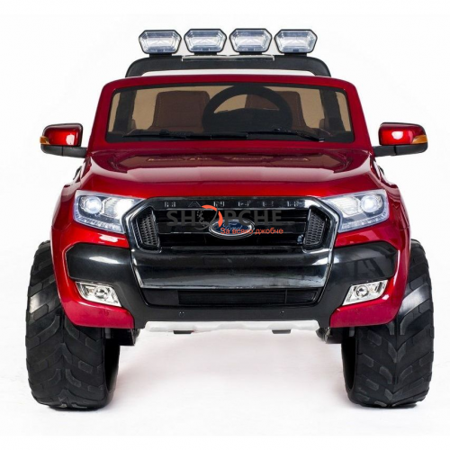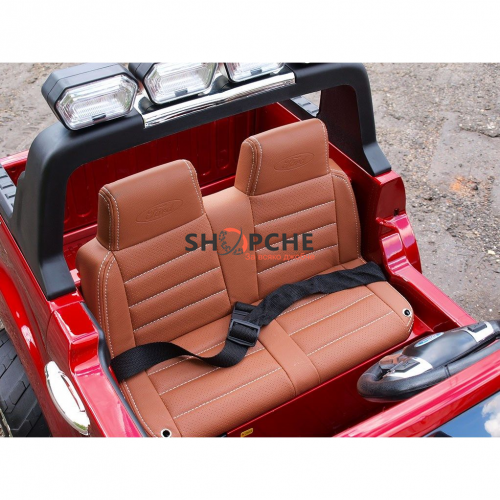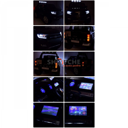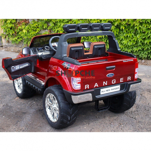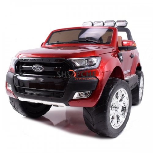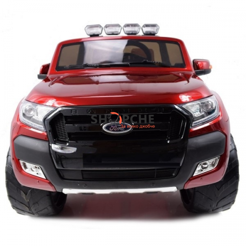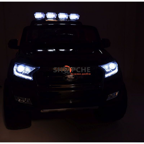 Акумулаторен джип Ford Revenger с MP4, 4x4, меки гуми, кожена седалка, металик боя и място за две деца!