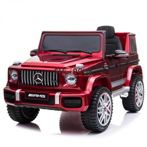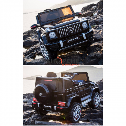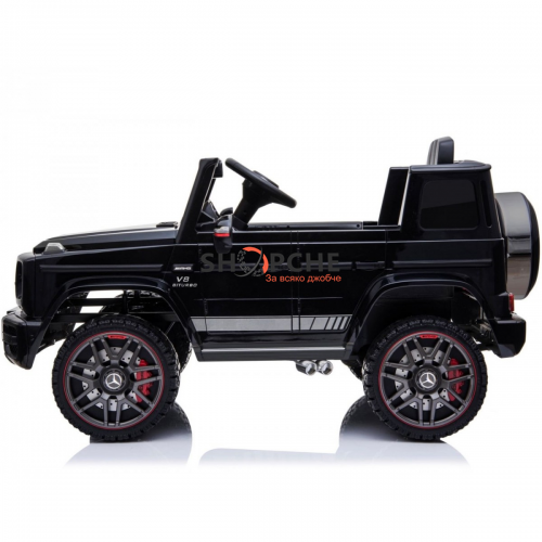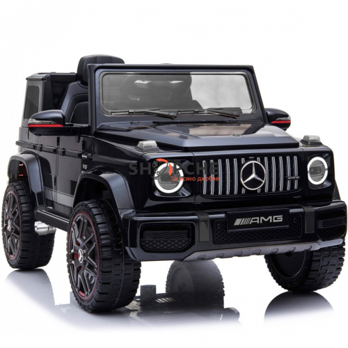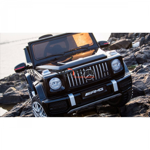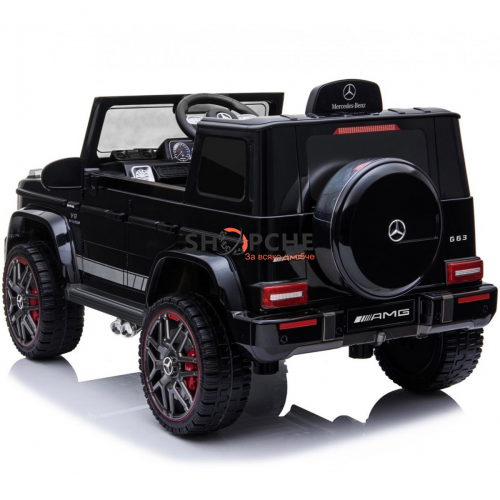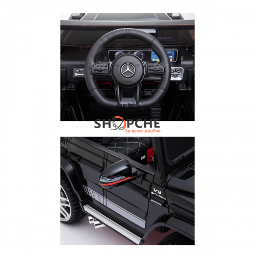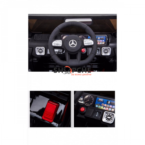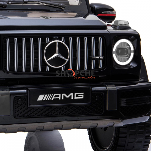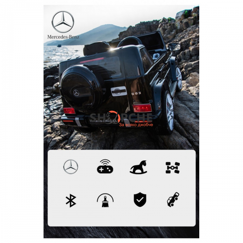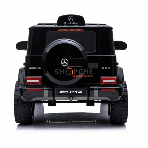 Акумулаторен джип Mercedes G63 AMG с меки гуми, кожена седалка, металик боя и лиценз от Daimler AG.