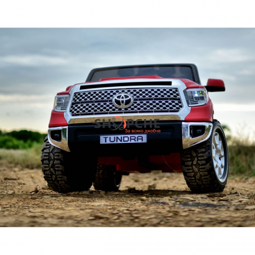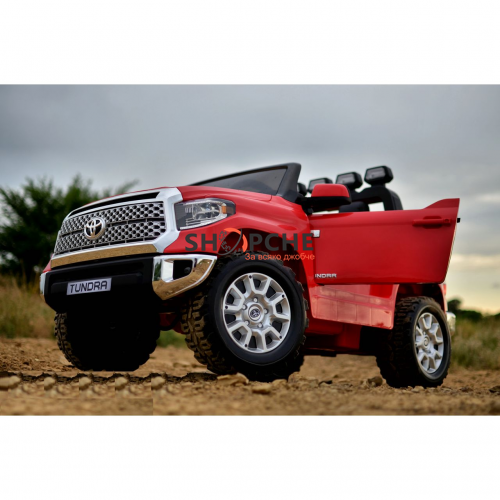 Акумулаторен джип Toyota Tundra 24V модел 2018 с меки гуми, отварящи се врати, кожена седакла, места за две деца и много екстри!