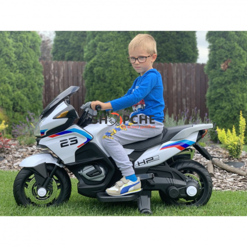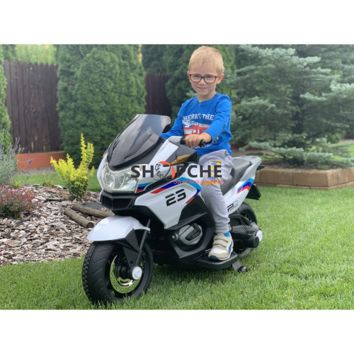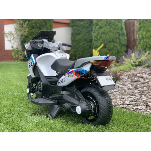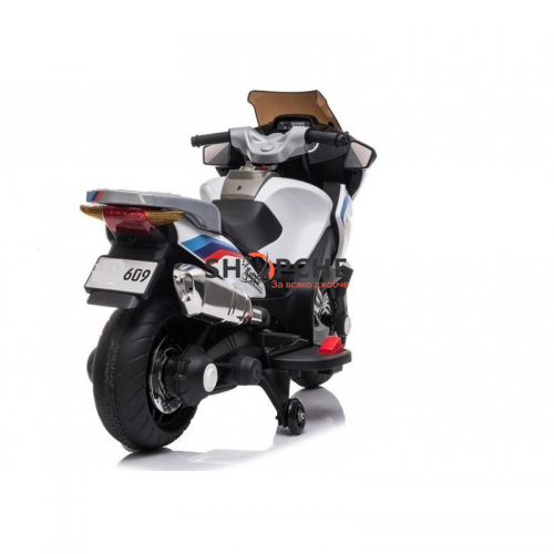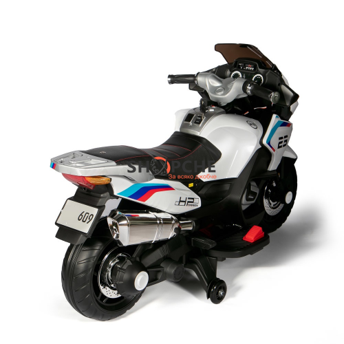 Акумулаторен мотор с 12V батерия, меки гуми и кожена седалка.