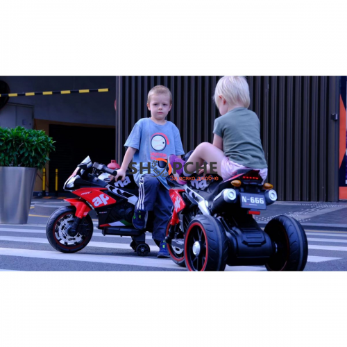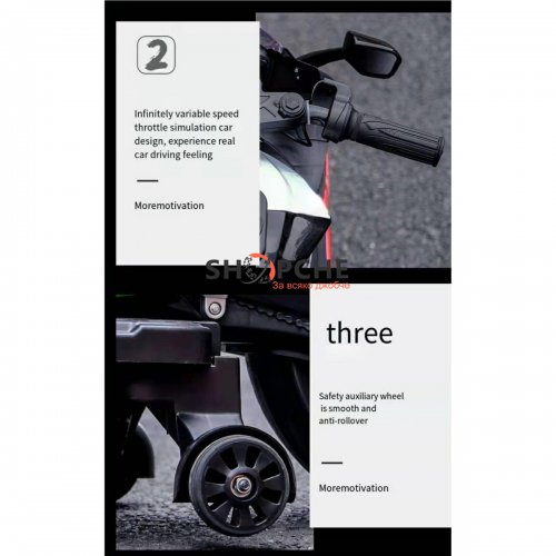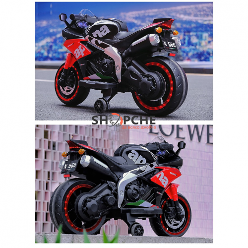 Акумулаторен мотор 666 с 12V батерия, меки гуми и кожена седалка.