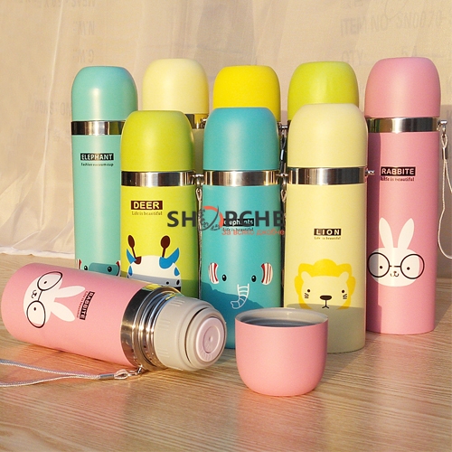 Всичките термоси са в свежи цветове, с апликация на животни.