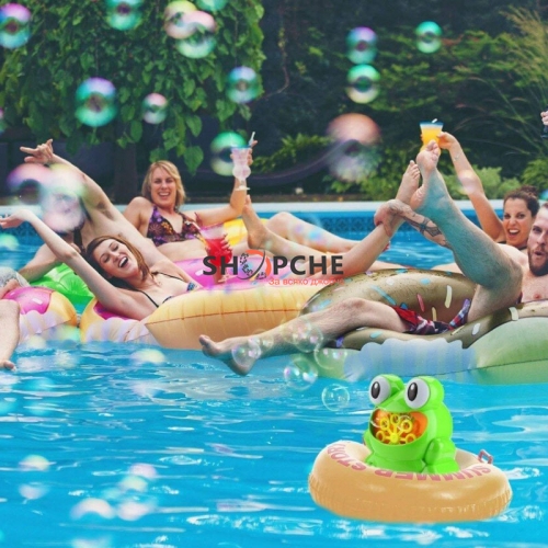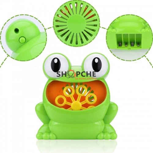 Забавна играчка жабка, която прави сапунени мехурчета.