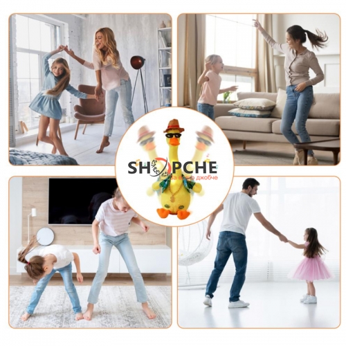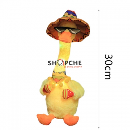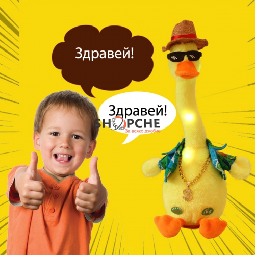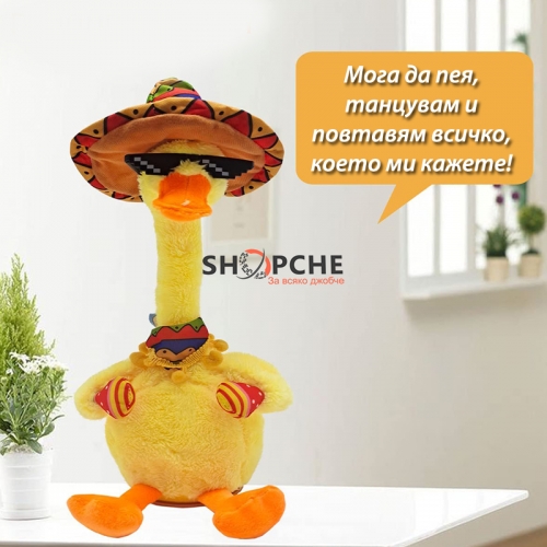 Патето танцува, изпълнява песни и повтаря всичко, което му кажете, свети с оживена многоцветна светлина!