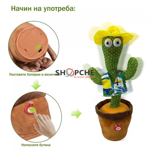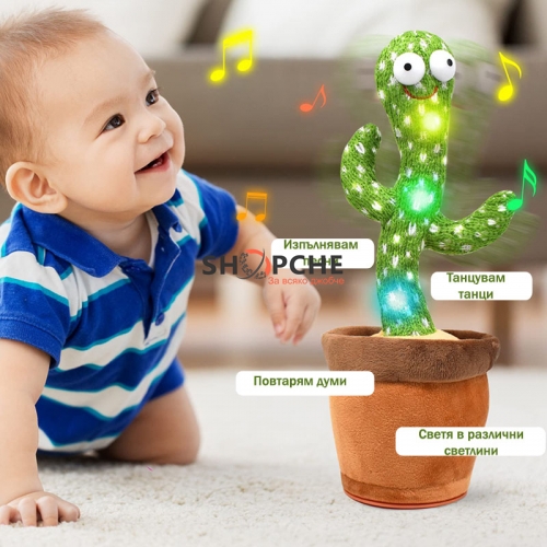 Кактусът изпълнява песни, танцува танци, повтаря каквото му кажете и свети с оживена многоцветна светлина.