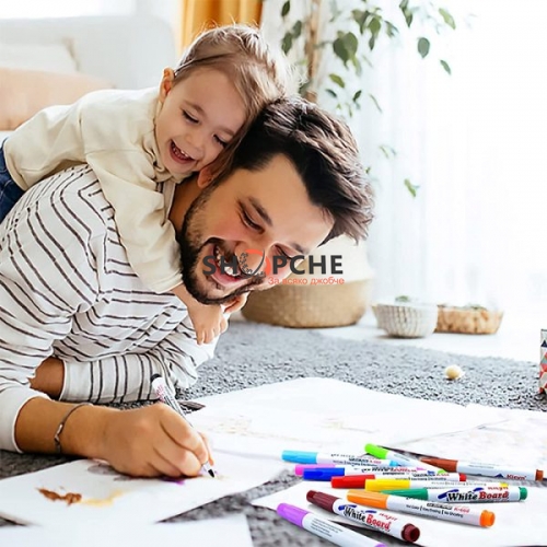Писалката съхне бързо и пише гладко, без изтичане на мастило. Мастилото на водна основа се изтрива лесно с кърпа и не оставя следи. Съдържа сертифицирано нетоксично мастило и специална формула със слаба миризма и е безвредна за човешкото тяло.