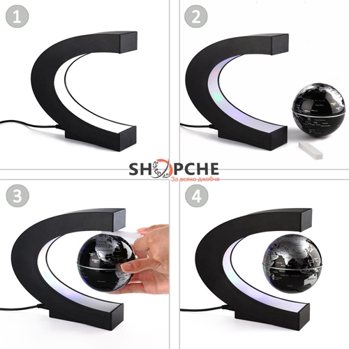 Floating globe стои самостоятено във въздуха - ефекта се дължи на магнитна система използваща електричество за да оперира.