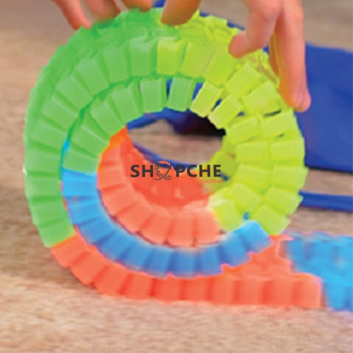 Толкова е просто – Само сглобете Magic Tracks пистата и когато загасите лампите неоновите цветове започват да светят и играта е безкрайна и незабравима!