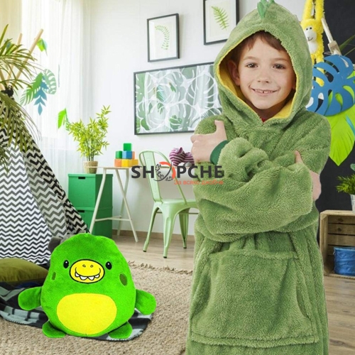 Когато детето Ви иска да играе с любимата си играчка просто го сгънете и закопчайте, а ако сте навън и на детето му стане студено разгъвате любимата играчка, закопчавате я в качулката и получавате улра мек и удобен суичър, който ще защити детето Ви от студа!