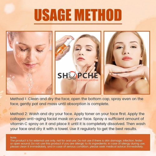 Представяме ви нашия изключителен 50 мл. витамин C избелващ серум за лице - спрей с натриев хиалуронат, предназначен да преобрази и подмлади вашата кожа. Неговата усъвършенствана формула съчетава витамин C и пептиди, предоставяйки ви по-ярка и хидратирана кожа.