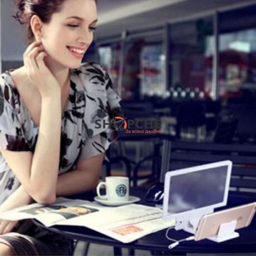Елегантната, семпла и олекотена приставка представлява поставка за телефон с лупа, която ще промени тотално ефекта на картината.