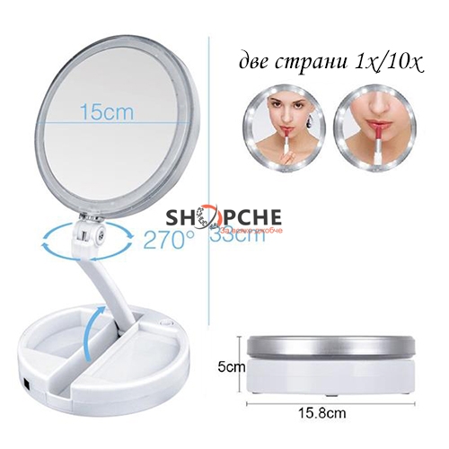 Сгъваемо огледало с LED светлини и увеличително стъкло