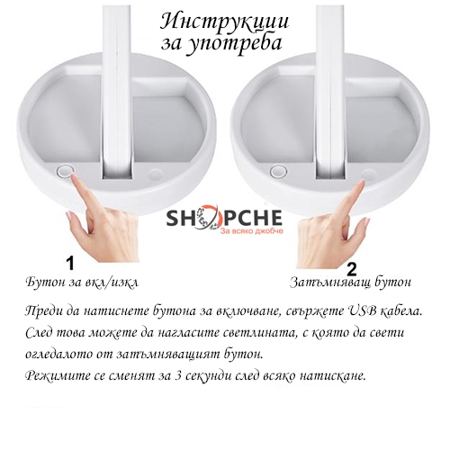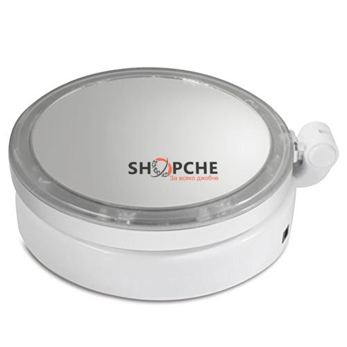 Огледалото притежава и LED светлини и се зарежда с USB кабел.