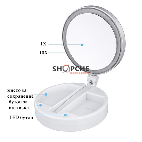Огледалото притежава две страни- едната увеличава силуетът 10 пъти, а в другата виждате реалният си образ.