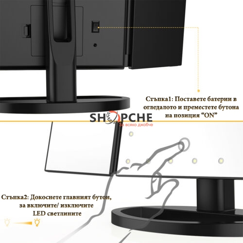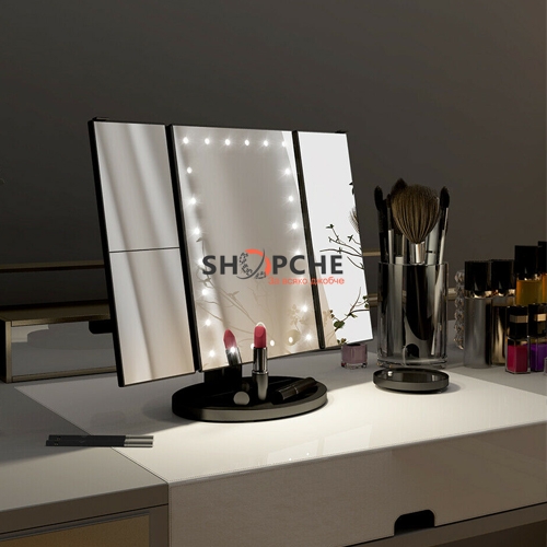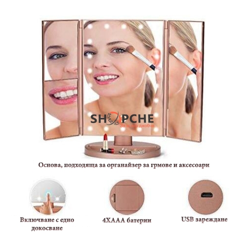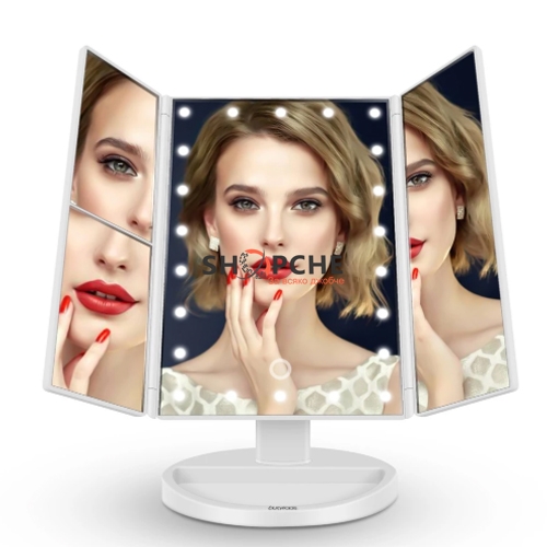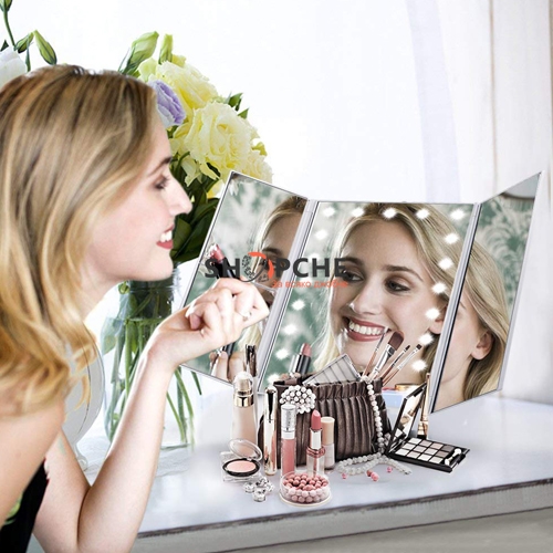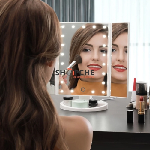 Огледалото има 3 панела, заедно с широк оглед за визуализиране на чертите на лицето и прави нанасянето на грима по-лесно и удобно, тъй като имате поглед над всеки детайл.