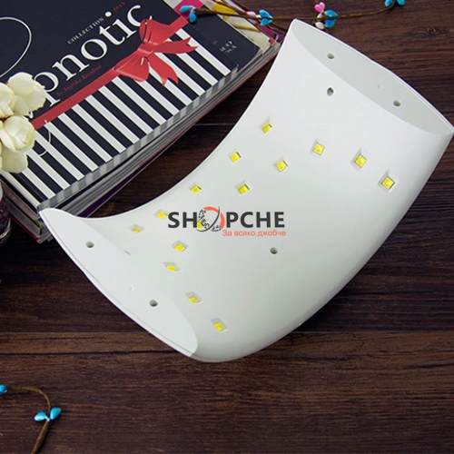 Снабдена е с 15 светлодиода, който нежно изпичат UV гела.