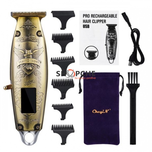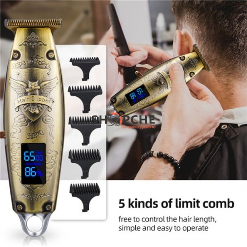 Машинката притежава стоманено острие, за да осигури бързо и ефективно бръснене или подстригване. Машинката включва три приставки с различни размери и предпазител на острието. Машинката се захранва посредством USB кабел включен в комплекта. Дизайнът на тримера е шокиращ и елегантен и подканва за прецизна работа при оформяне на брада, мустаци и ефектна мъжка прическа.