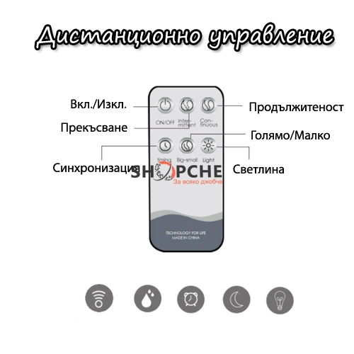 3 режима - 1 час/ 3 часа/ 6 часа/ постоянен режим на работа.