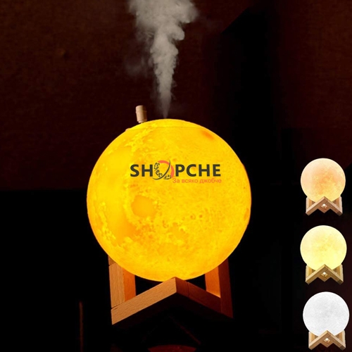 Тази прекрасна нощна лампа тип дифузер и овлажнител свети в 3 цвята.