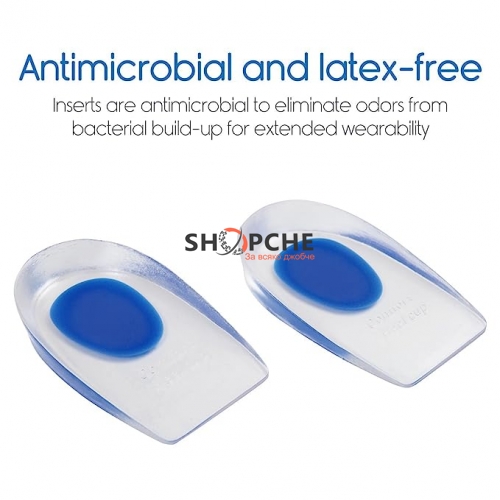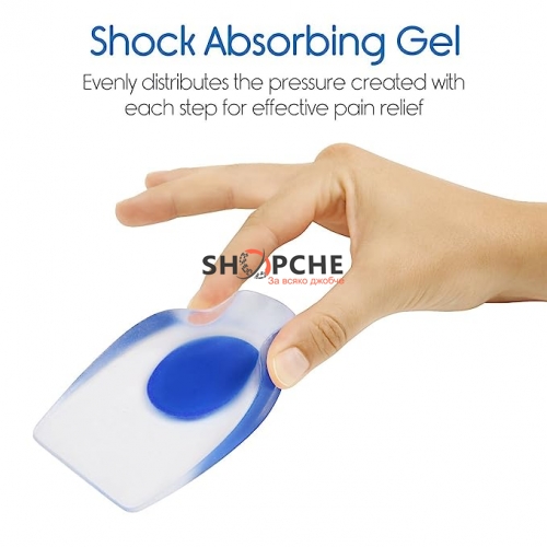 Меката подложка, изработена от гел, плътно прилепва към петата; спомага за успокояване на болката в областта на ходилото и създава чувство за комфорт при стъпване; омекотява натиска върху петата при продължително стоене или ходене.
