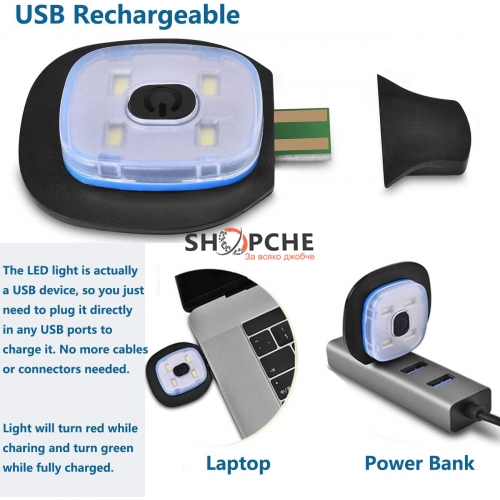 Освен това, лампата се презарежда чрез USB конектор, което позволява бързо и лесно зареждане точно до водата.
