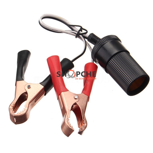 Може да се захранва по 2 начина: през щекер запалка 12V в колата или с щипки директно към 12V акумулатор.