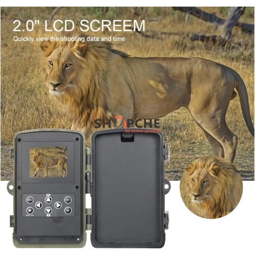 Записва видео, прави снимки и изпраща MMS и имейли. Водоустойчивата ловна Full HD камера HC-801M/G е идеалният избор за охрана на имотите ви или наблюдение на ловния периметър. Подходяща е за пчелини, овощни градини и следене на популацията на различни животни. Камерата разполага с PIR сензор, който улавя движението пред обектива. Можете да настроите устройството да снима само в определени часове, като през останалото време ще бъде неактивно. Кадрите ще бъдат с високо качество, независимо дали снимате през деня или нощта.