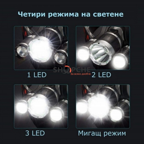 Четири режима на работа – 1 диод, 2 диода, 3 диода, SOS режим