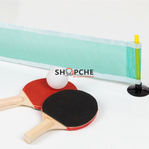 включва 2 хилки, 3 пинг понг топки, мрежа