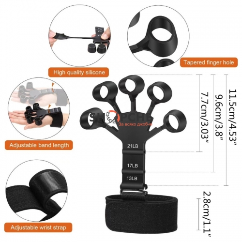 1. Finger Grip Strengthener е многофункционален тренажор, предназначен за трениране на хват и укрепване на пръстите, което може да помогне за подобряване на силата на хват и медицинска рехабилитация.